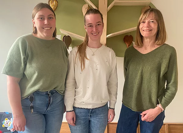 Foto: Begeleiders Noor Kokke en Mirthe van Dijck, samen met vrijwilliger Leen